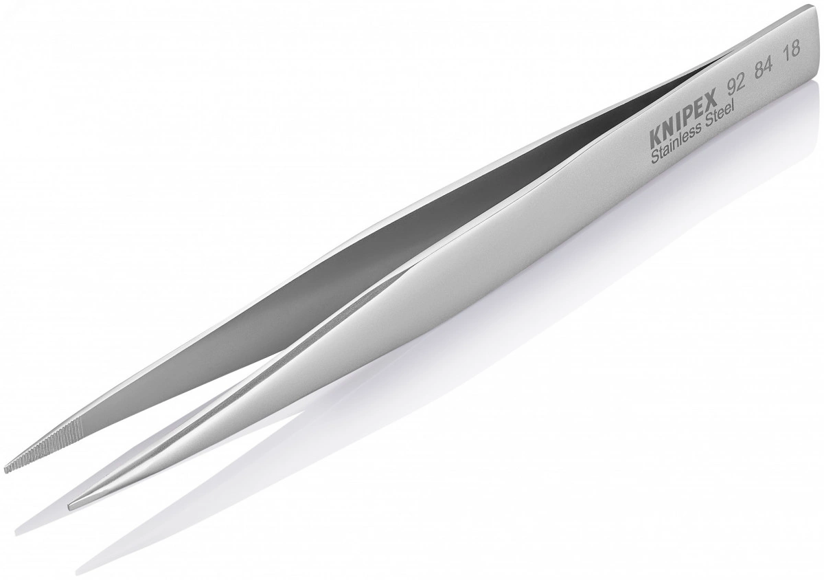 Пинцет захватный прецизионный Универсальный пинцет подходит для требований стандартных областей применения и прецизионных задач. Широкий выбор вариантов конструкции - прямые, угловые, с гладкими или шершавыми захватными поверхностями и ручками, со вставочными иглами, с узкими или тупыми наконечниками, а также в различных вариантах длины. Для электронной промышленности, часовщиков и ювелиров. Высококачественная нержавеющая сталь - чрезвычайно прочная и очень хорошая коррозионная стойкость к различным атмосферным воздействиям и многим агрессивным материалам