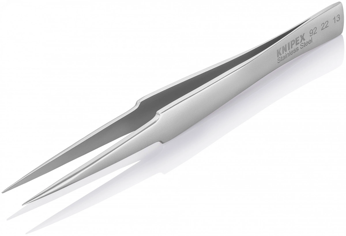 Пинцет захватный прецизионный Универсальный пинцет подходит для требований стандартных областей применения и прецизионных задач. Широкий выбор вариантов конструкции - прямые, угловые, с гладкими или шершавыми захватными поверхностями и ручками, со вставочными иглами, с узкими или тупыми наконечниками, а также в различных вариантах длины. Для электронной промышленности, часовщиков и ювелиров. Высококачественная нержавеющая сталь - чрезвычайно прочная и очень хорошая коррозионная стойкость к различным атмосферным воздействиям и многим агрессивным материалам