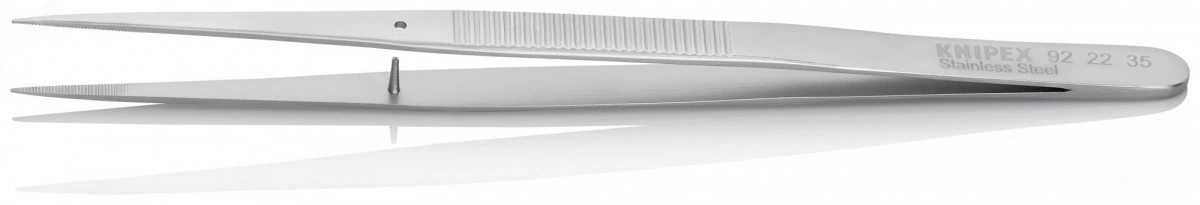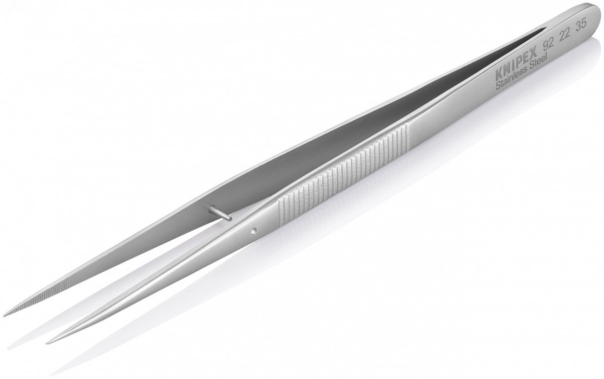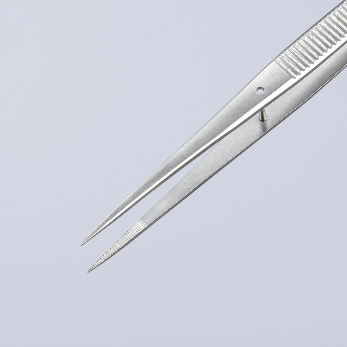 Пинцет захватный прецизионный с направляющим штифтом тонкие зазубренные губки L-155 мм хромоникелевая сталь антимагнитный кислотостойкий KN-922235