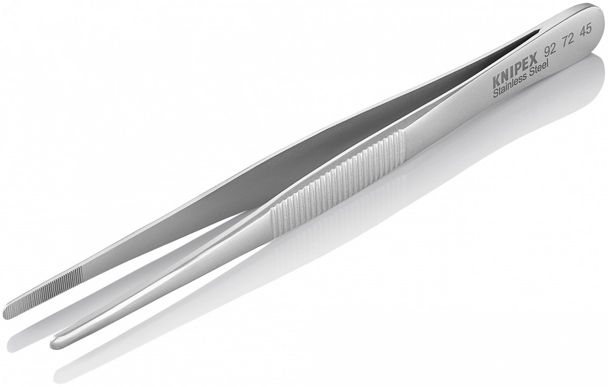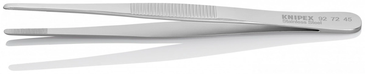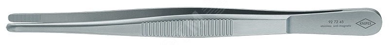 Пинцет захватный прецизионный закруглённые зазубренные губки шириной 35 мм хромоникелевая сталь нержавеющий немагнитный L-145 мм KN-927245