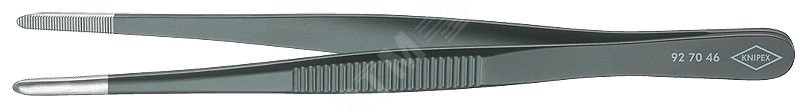 Пинцет захватный прецизионный закруглённые зазубренные губки шириной 35 мм пружинная сталь хромированный матовая чёрная лакировка L-145 мм KN-927046