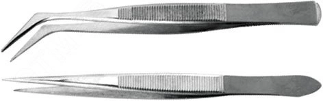 Набор 'Пинцет прямой. Пинцет с захватом под углом 45' Материал - инструментальная сталь. Упаковка - блистер.