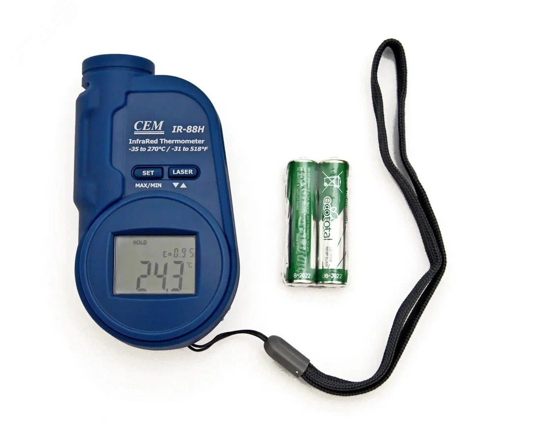 Этот карманный инфракрасный термометр с лазерной указкой разработан для удобства использования и может быть использован в различных бытовых ситуациях, таких как контроль работы холодильника, посудомоечной машины и других устройств. Он также имеет функцию удержания данных, определения максимального и минимального значений и автоматическое отключение питания. Устройство оснащено индикатором низкого заряда батареи, ремешком для руки и регулируемым коэффициентом излучения. Оно может применяться в различных отраслях, включая ЖКХ, теплоэнергетику, городские хозяйства и обслуживание автотранспорта, и используется в тех случаях, когда измерение температуры поверхности традиционным (контактным) термометром невозможно.