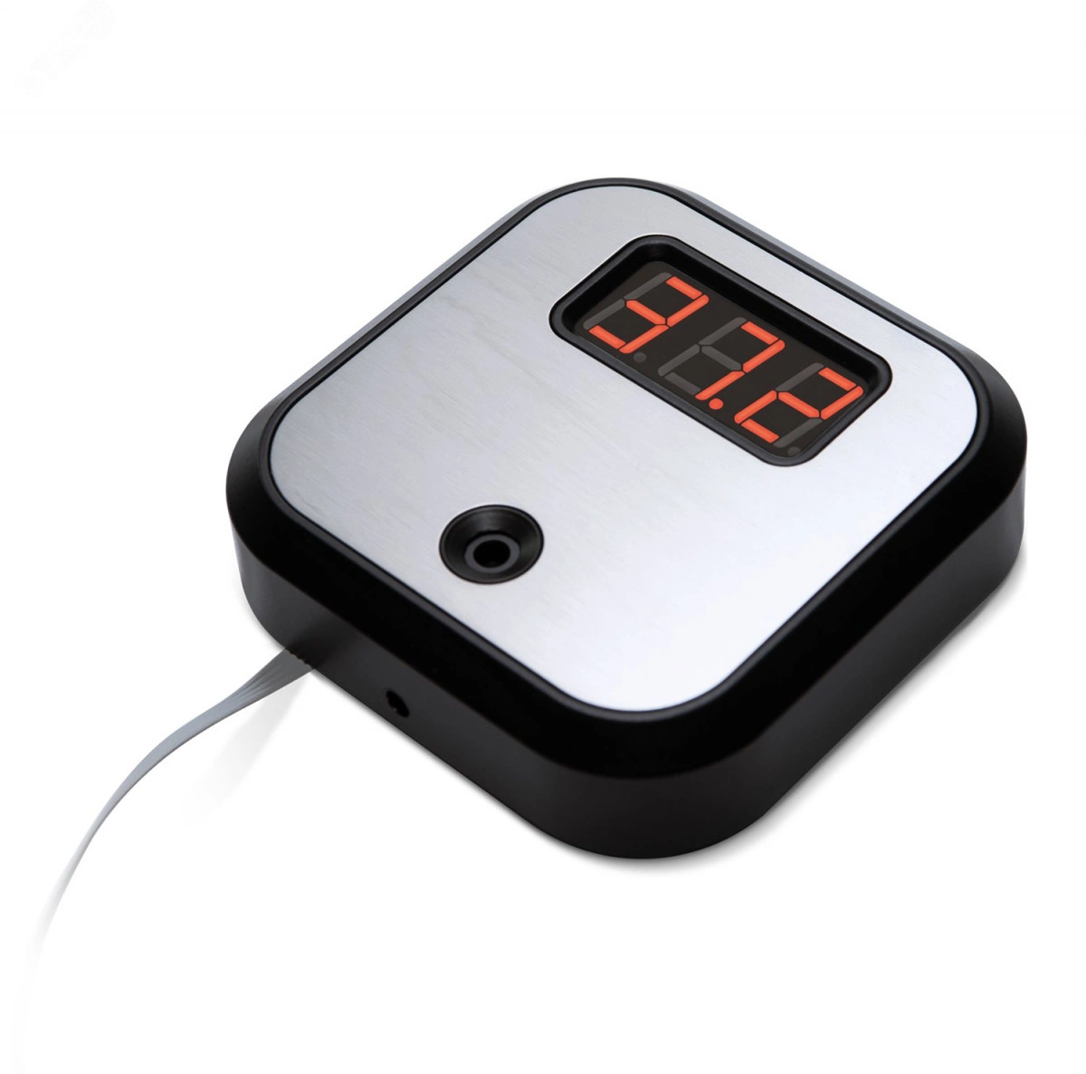 Пирометр PERCo-AT01 предназначен для бесконтактного измерения температуры открытых участков тела человека, например, запястья или ладони на проходных предприятий, административных учреждений, транспортных объектов и т.п. Пирометр работает в качестве внешнего верифицирующего устройства совместно с турникетом или замком в составе систем контроля доступа. Система позволяет задать порог нормальной температуры тела, при превышении которого турникет или замок не откроется для прохода. Пирометр представляет собой блок в металлическом корпусе, на передней панели которого расположен трехзначный светодиодный индикатор с разделительными точками и окно датчика температуры. Пирометр имеет встроенную звуковую индикацию. Факт измерения температуры объекта подтверждается кратковременным звуковым сигналом.