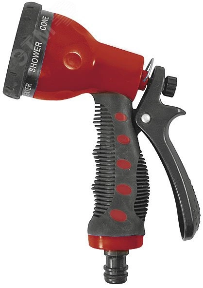 7 режимов распыления. Скоба-фиксатор для непрерывной подачи воды. Универсальное быстросъемное соединение. Материал - пластиковый корпус, обрезиненная ручка. Упаковка - блистер.