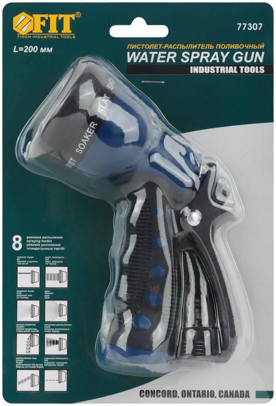 Полное описание: Пистолет для полива 8 режимов 200мм син. FIT 77307
