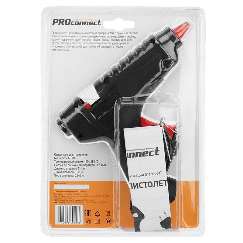 Пистолет клеевой 60Вт большой (блист.) PROCONNECT 12-0104