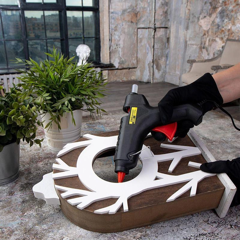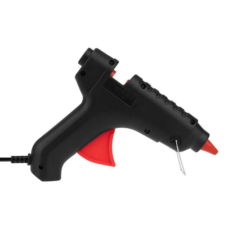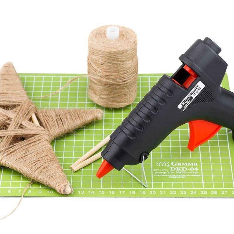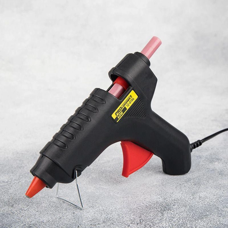 Пистолет клеевой 60 Вт большой (в блистере) предназначен для прочной фиксации поверхностей с помощью расплавленной клеевой массы. Заправляется он специальным клеевым стержнем диаметром 11 мм. Корпус клеевого пистолета изготовлен из ударопрочной пластмассы и имеет скобу для надежной установки в нерабочем положении. Принцип работы: клеевой стержень плавится в металлической камере с помощью нагревательного устройства и для точного дозирования при нажатии на курок подаётся из сопла на склеиваемую поверхность. Высокая мощность пистолета в 60 Вт позволяет очень быстро разогреть клеевой стержень и получать удовольствие от быстрой и бесперебойной работы. С его помощью вы сможете склеить: дерево, пластик, резину, кожу, стекло, металлы (их лучше перед работой разогревать феном), ткань, пенопласт, керамику, картон, бумагу, цветы или что-то другое. Используется как в домашних условиях, так и на производстве: для монтажа электрических плат, декорирования, изготовления упаковочной и сувенирной продукции, при прокладке кабеля сетей фиксированной телефонной связи и сетей передачи данных, при производстве багетов и картинных рам. Два клеевых стержня в комплекте.
