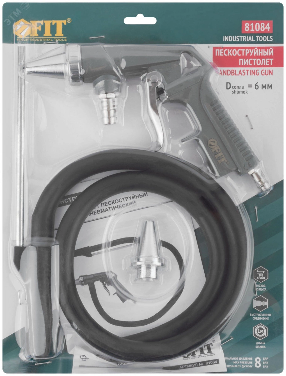 Для пневмокомпрессора. Соединение быстросъемное. Расход воздуха 240 л/мин. Максимальное давление 8 бар, рабочее давление 3,5-5 бар. Длина шланга 1 м. Для удаления старой краски и ржавчины с деталей и поверхностей. Материал - корпус из алюминия с порошковым покрытием, резиновый шланг, насадка из инструментальной стали с хромированным покрытием. Упаковка - блистер.