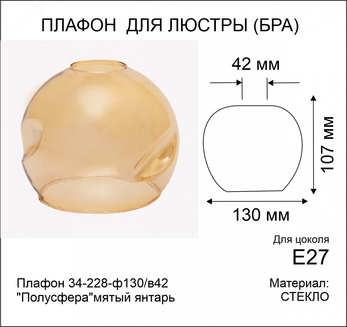 Плафон 34-228-ф130/в42 Полусфера мятый янтарь
