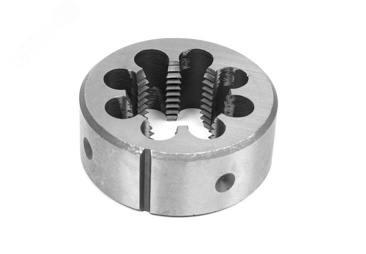 Плашка служит для обработки металлических заготовок - нарезания внешней резьбы. Изделие прослужит долгое время за счет высокого качества используемого материала - инструментальной стали.