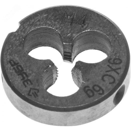 Полное описание: Плашка М4x0.7мм, сталь 9ХС, круглая ручная