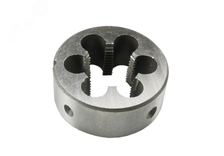 Плашка служит для обработки металлических заготовок - нарезания внешней резьбы. Изделие прослужит долгое время за счет высокого качества используемого материала - инструментальной стали.