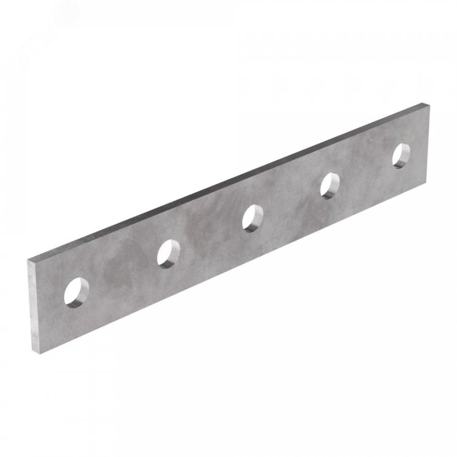 Металлическая пластина с пятью отверстиями круглой формы, диаметром 13 мм, размер пластины 40х240 мм, толщина 5 мм. Используется для соединения между собой различных элементов монтажных профилей без использования сварки, с помошью специальных монтажных крепежей, Защищена от коррозии цинковым покрытием, нанесенным методом горячего цинкования.