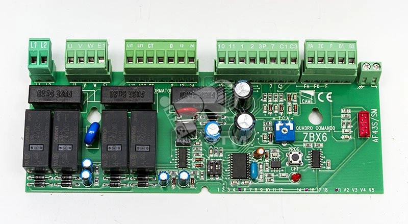 Плата блока управления обеспечивает следующие функции - автоматическое определение кода между передатчиком и приемником. Возможность управления в режиме 'Присутствие оператора' для обеспечения максимальной безопасности. Регулировка времени автоматического закрывания. Предварительное включение сигнальной лампы после подачи команды для предупреждении о движении стрелы