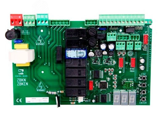 CAME ZBKN – обновленная плата блока управления, подходит для приводов предназначенных для тяжелых ворот откатного типа BK-1200, ВK-1080 и BK-2200, так же подойдет для приводов обновленной версии BKS12AGS, BKS18AGS, BKS22AGS. Данная плата имеет множество функций и режимов работы. Плата способна обеспечивать режим работы автоматического закрытия, таймер которого активируется в конце цикла открытия ворот, время работы таймера можно отрегулировать на самом блоке управления. В блоке управления можно настроить функцию частичного открытия для пешеходов. Установка и подключение фотоэлементов в плату, повысит безопасность эксплуатации откатных ворот.