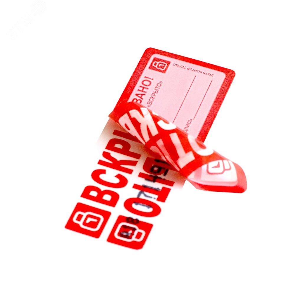 "Представляет собой самоклеющуюся этикетку на специальной подложке, выполненную из полиэстера с высокоадгезивным клеевым слоем. При попытке отклеивания от опломбируемой поверхности проявляются надписи """"ВСКРЫТО"""" и значок производителя, не исчезающие при повторном наклеивании. Воздействие на наклейку высокой температурой приводит к необратимому потемнению изделия, что служит дополнительной защитой. Каждая наклейка имеет свой нестираемый индивидуальный номер, который остается на опломбируемой поверхности, что исключает возможность подмены. Содержит поля """"дата"""" и """"подпись"""" для удобства в работе. Подходит для пломбирования любых чистых поверхностей."