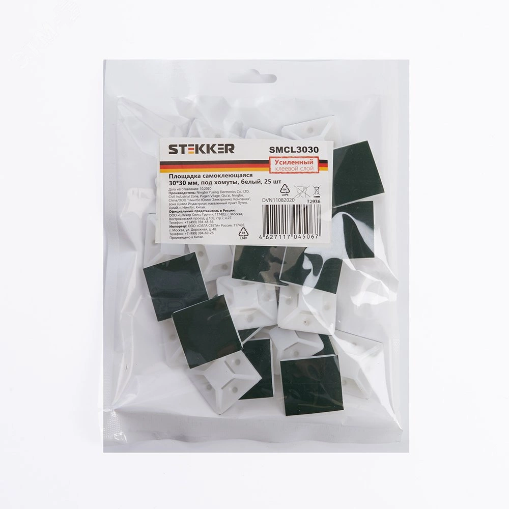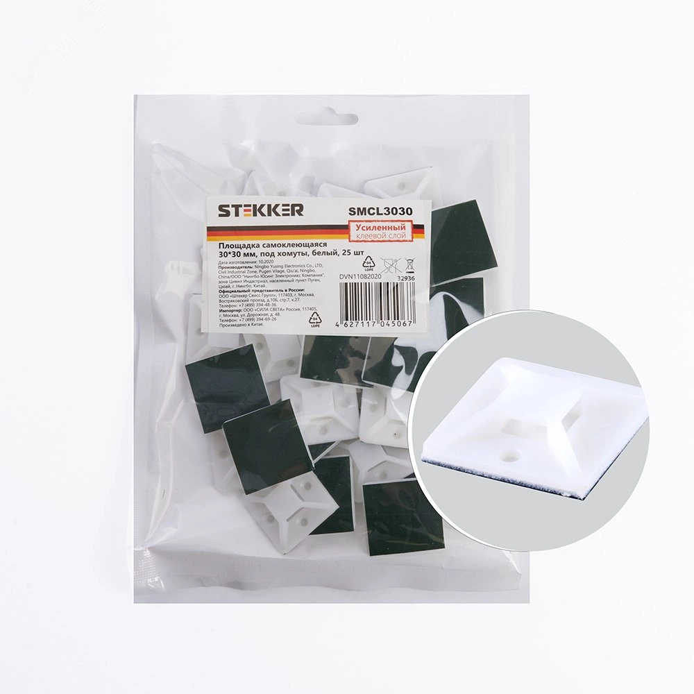 Площадка самоклеющаяся 30x30 мм, под хомуты, белый,