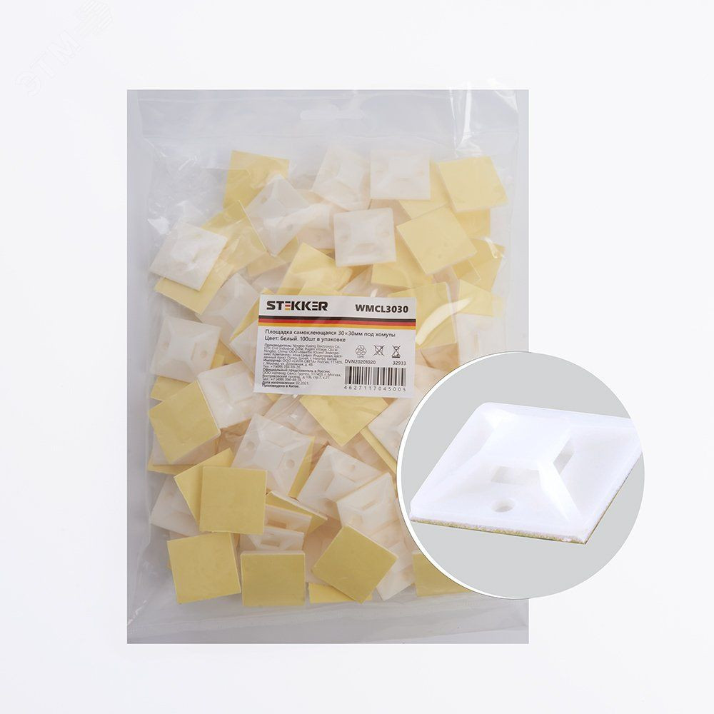 Полное описание: Площадка самоклеющаяся 30x30 мм, под хомуты, белый,