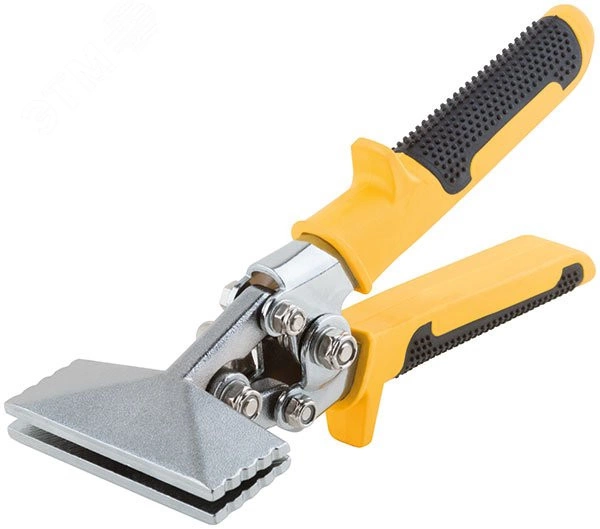 Для работы с листовым металлом (холоднокатаная сталь, медь, алюминий) толщиной до 0,8 мм. Основные области применения - кровельные работы, монтаж вентиляционных систем. Материал - губки и корпус из инструментальной стали, пластиковые прорезиненные ручки. Упаковка - блистер.