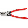 09 01 240 SB Плоскогубцы комбинированные особой мощности ''Lineman's Pliers'' Высокая передача усилия. 50 % экономии сил по сравнению с обычными пассатижами. массивная конструкция для больших нагрузок, универсальное применение. эргономичная форма ручки для лучшего контакта с рукой предотвращает усталость. особенно эффективная область захвата с разнонаправленными зубьями в зеве клещей - для прочного зажима и вытягивания. дополнительная область захвата под шарниром для мощного рычажного усилия и обжима. с режущими кромками для мягкой и твердой проволоки. режущие кромки дополнительно закалены токами высокой частоты до твердости примерно 64 HRC. карта самообслуживания/ блистер. - Параметры резания/проволока средней твёрдости (диаметр) - 4,6mm - Параметры резания/ твёрдая проволока (диаметр) - 3,0mm