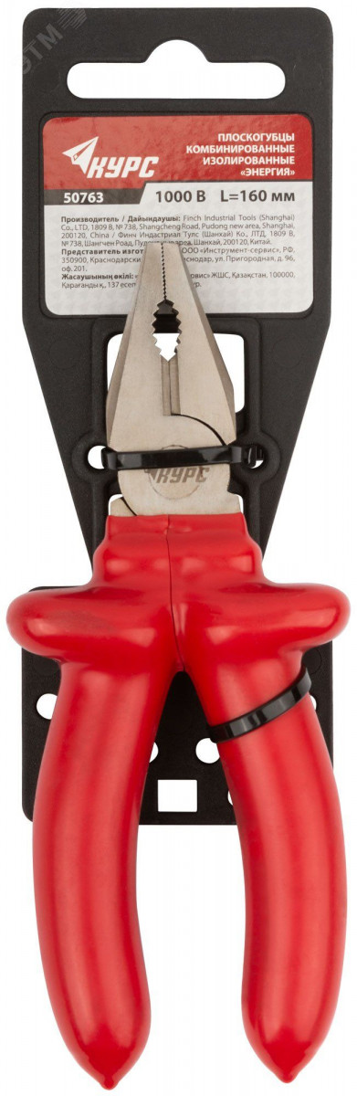 Плоскогубцы комбинированные ''Энергия'' КУРС предназначены для удержания деталей, гибки проволоки, резки проволоки и проводов под напряжением до 1000 В. Двухслойные изолированные ручки комфортно лежат в руке и надежно защищают от поражения электрическим током. Изготовлены из качественной инструментальной стали, обеспечивающей высокий ресурс и износостойкость. Никелевое покрытие губок предотвращает коррозию.
