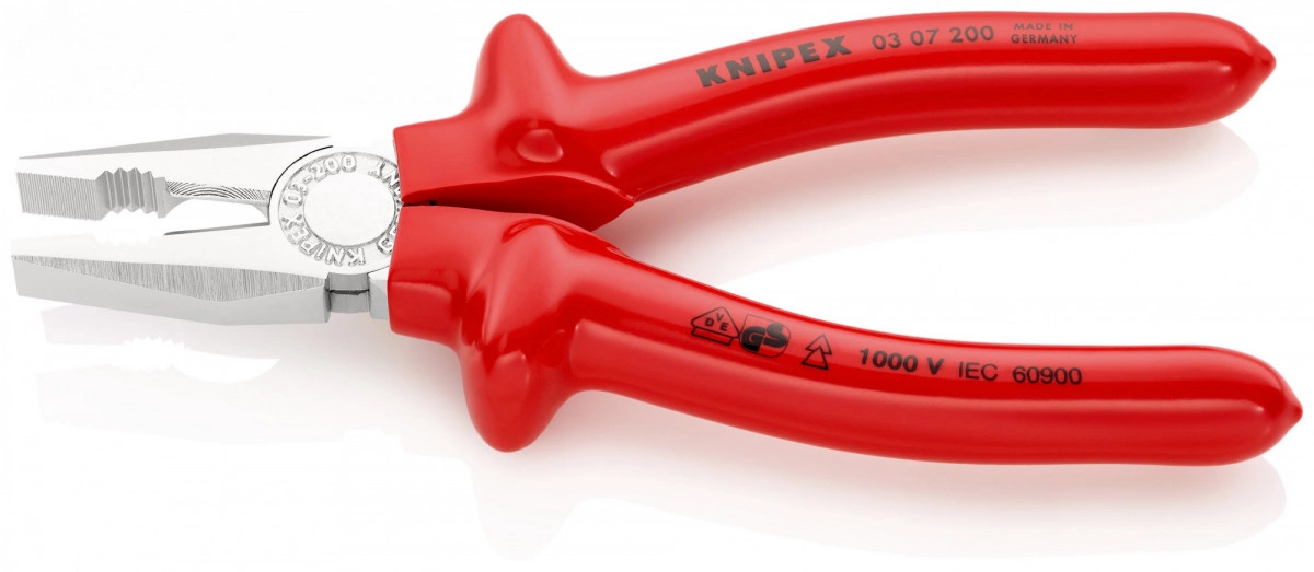 03 07 200 Плоскогубцы комбинированные с зонами захвата плоских и круглых деталей. с режущими кромками для мягкой и твердой проволоки. длинные режущие кромки для толстых кабелей. режущие кромки дополнительно закалены токами высокой частоты до твердости примерно 60 HRC. - Параметры резания/проволока средней твёрдости (диаметр) - 3,8mm - Параметры резания/ твёрдая проволока (диаметр) - 2,5mm - Параметры режима резки - медный кабель, многопроводный - 13,0mm - Параметры режима резки - медный кабель, многопроводный - 16,0mm? - Испытано на соответствие нормам VDE - да