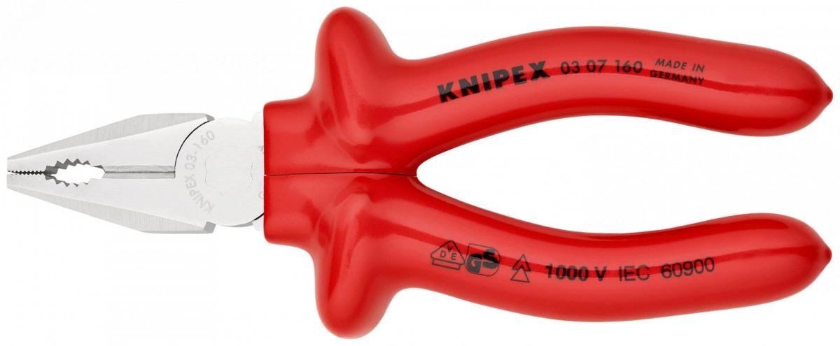 03 07 160 Плоскогубцы комбинированные с зонами захвата плоских и круглых деталей. с режущими кромками для мягкой и твердой проволоки. длинные режущие кромки для толстых кабелей. режущие кромки дополнительно закалены токами высокой частоты до твердости примерно 60 HRC. - Параметры резания/проволока средней твёрдости (диаметр) - 3,1mm - Параметры резания/ твёрдая проволока (диаметр) - 2,0mm - Параметры режима резки - медный кабель, многопроводный - 10,0mm - Параметры режима резки - медный кабель, многопроводный - 16,0mm? - Испытано на соответствие нормам VDE - да