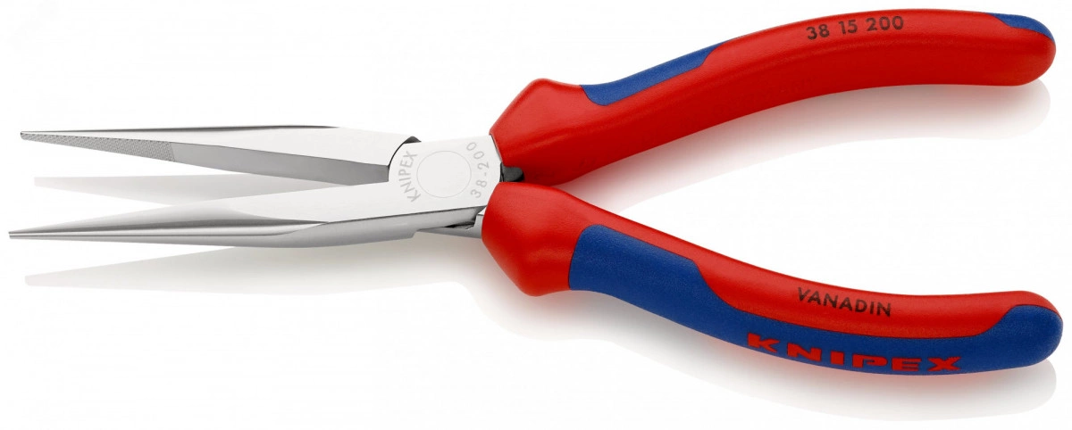 Плоскогубцы механика плоскокруглые губки с крестовой насечкой L-200 мм хромированные 2-компонентные рукоятки KN-3815200