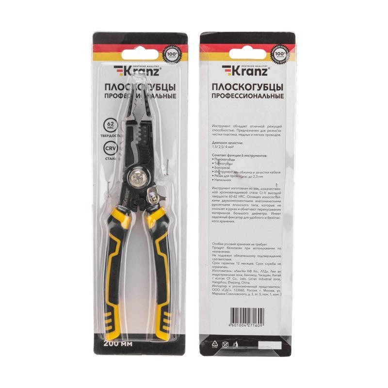 Полное описание: Плоскогубцы профессиональные многофункциональные 200мм Kranz KR-12-4655-5