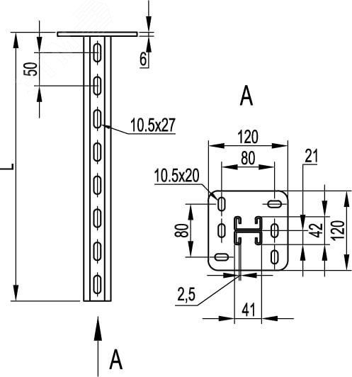 Вертикальный подвес BSD-21 используется при монтаже кабельных трасс на консолях - ВВН-60, ВВН-70, BBD-21, ВВР-21/41. Одно/двусторонний и параллельный монтаж кабельных трас. Они крепятся вертикально - к полу или потолку. С-образный двойной профиль подвеса 41х21 мм. Длина 600 мм, толщина профиля подвеса - 2,5 мм, толщина пластины - 6 мм. В основании 6 отверстий под метизы М10. Цинк-ламельное покрытие обеспечивает высокую защиту от коррозии, применяется в основном в автомобильной промышленности, строительной отрасли.