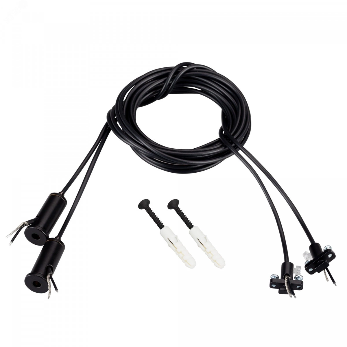 Токопроводящие регулируемые подвесы (2 шт.) серии ARL черного цвета для профилей SL-LINE-3535, 5050, 3667, 3691, 4932, 5050, 4970, 7477, 2011М, SL-LINIA49-F, 62-F, 88-F, SL-ARC-3535 в комплекте с тросовыми держателями, фиксаторами для троса и фурнитурой. Медное сечение кабеля 2х0.5 мм?. Максимальная нагрузка на один подвес - 4 кг. Токопроводящий подвес - элегантное решение подвода питания к светодиодной ленте.