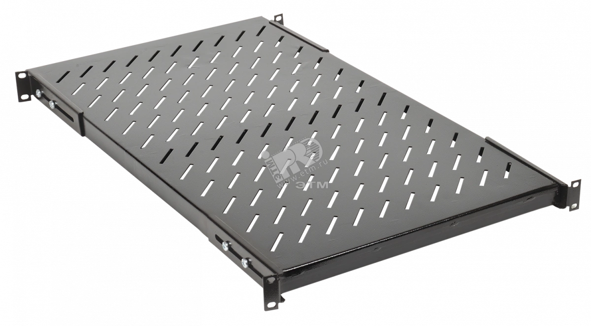 Полки для телекоммуникационных шкафов и стоек ITK предназначены для размещения на них различного оборудования, не имеющих специальных кронштейнов и мест крепления сразу на 19-дюймовые профили шкафа: от ИБП, KVM-консолей и телефонных аппаратов, заканчивая различными специализированными приборами и медицинским оборудованием. В зависимости от типа конструкции и исполнения полки бывают стационарными, выдвижными или консольными. Стационарные полки рассчитаны на тяжелое оборудование с постоянным статичным размещением, крепятся как на фронтальные, так и на задние профили, имеют перфорированную поверхность для обеспечения лучшего охлаждения и отведения теплых воздушных потоков. Ушки, с помощью которых полки крепятся к монтажным профилям, могут регулироваться спереди и сзади в пределах 50 мм, что позволяет увеличить глубину полки на 100 мм и упрощает ее установку внутри шкафа.