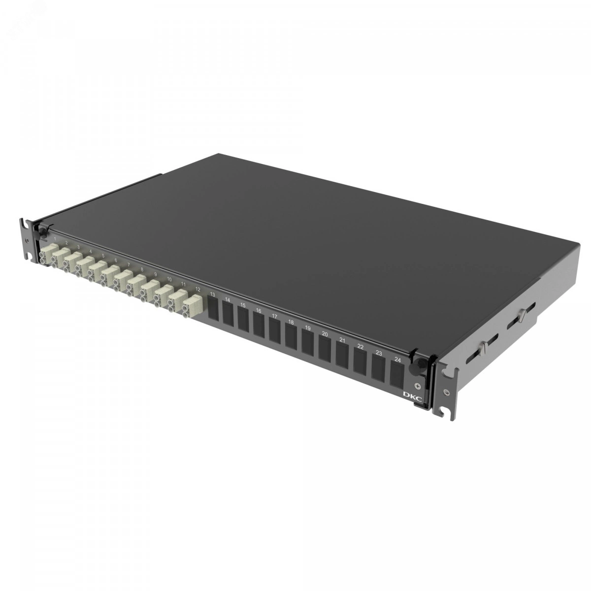 Полка оптическая выдвижная 1U с адатерами 12 х dupleх LC ОМ2 в комплекте с лицевой панелью. пигтейлами. сплайс-кассет(ой/ами) и гильзами КДЗС
