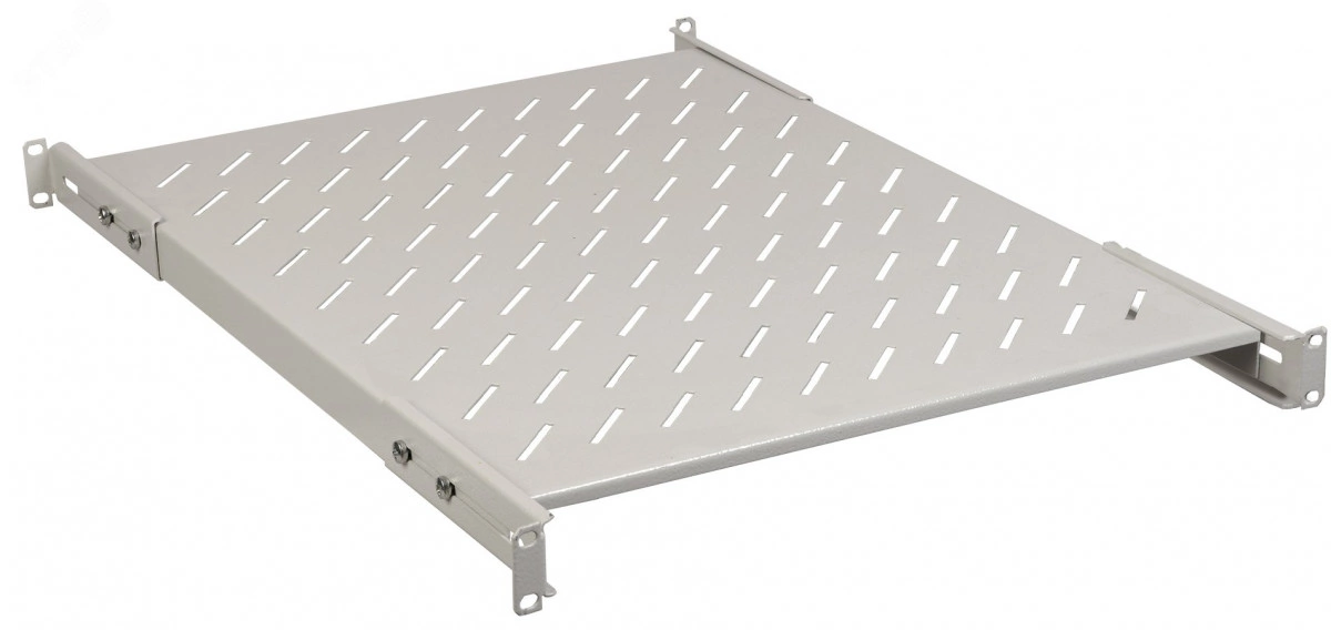 Полки для телекоммуникационных шкафов и стоек ITK предназначены для размещения на них различного оборудования, не имеющих специальных кронштейнов и мест крепления сразу на 19-дюймовые профили шкафа: от ИБП, KVM-консолей и телефонных аппаратов, заканчивая различными специализированными приборами и медицинским оборудованием. В зависимости от типа конструкции и исполнения полки бывают стационарными, выдвижными или консольными. Стационарные полки рассчитаны на тяжелое оборудование с постоянным статичным размещением, крепятся как на фронтальные, так и на задние профили, имеют перфорированную поверхность для обеспечения лучшего охлаждения и отведения теплых воздушных потоков. Ушки, с помощью которых полки крепятся к монтажным профилям, могут регулироваться спереди и сзади в пределах 50 мм, что позволяет увеличить глубину полки на 100 мм и упрощает ее установку внутри шкафа.