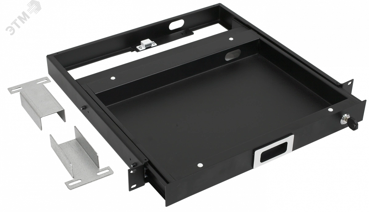 Полка выдвижная клавиатурная стандарта 19' устанавливается на 19-ти дюймовые монтажные профили и предназначен для размещения компьютерной клавиатуры, для администрирования оборудования установленного в серверный шкаф 19'.Полка имеет высоту 1U и оснащена выдвижным телескопическим механизмом на основе роликовых кассет, а также замком с индивидуальным ключом.