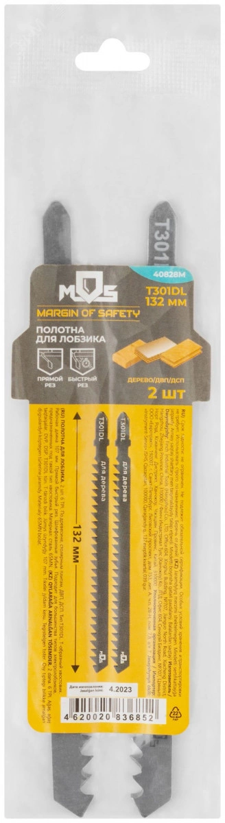 Комплект из двух полотен MOS T301DL предназначен для обработки древесины. Полотна изготовлены из качественной стали 65MN и имеют закалку высокой твердости. Шлифованные зубья обеспечивают высокую точность реза. Длинное полотно позволяет пилить материалы большой толщины. Т-образный хвостовик обеспечивает совместимость полотен с большинством моделей электролобзиков.
