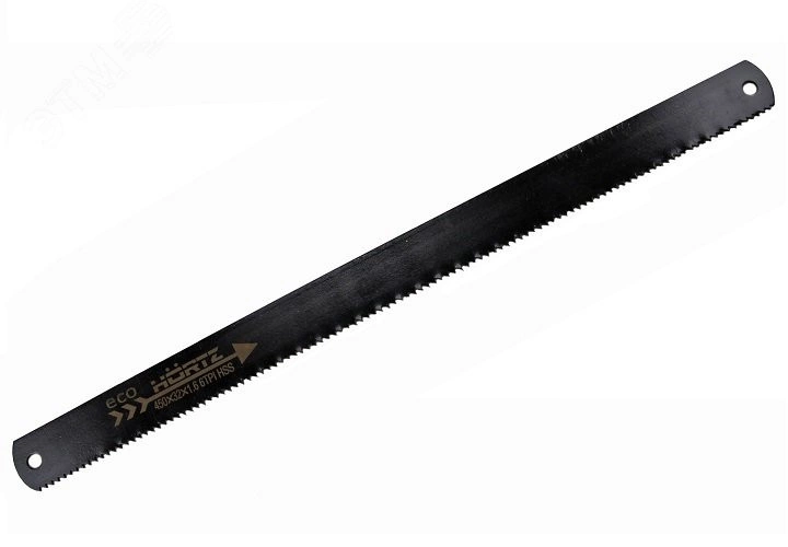 Машинное полотно выполнено из прочной стали, применяется при полуавтоматической резке металлов. Изделие оснащено отверстиями для закрепления на раме. На полотне имеется одна режущая сторона.
