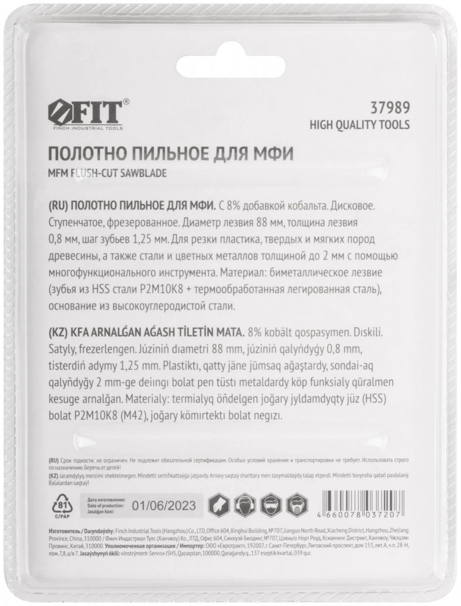 С 8% добавкой кобальта. Дисковое. Ступенчатое. Фрезерованное. Диаметр лезвия 88 мм. Шаг зубьев 1,25 мм. Универсальное быстросъемное крепление. Для резки стали, цветных металлов, твердых и мягких пород древесины, пластика. Материал: биметаллическое лезвие, основа из высокоуглеродистой стали. Упаковка: блистер.