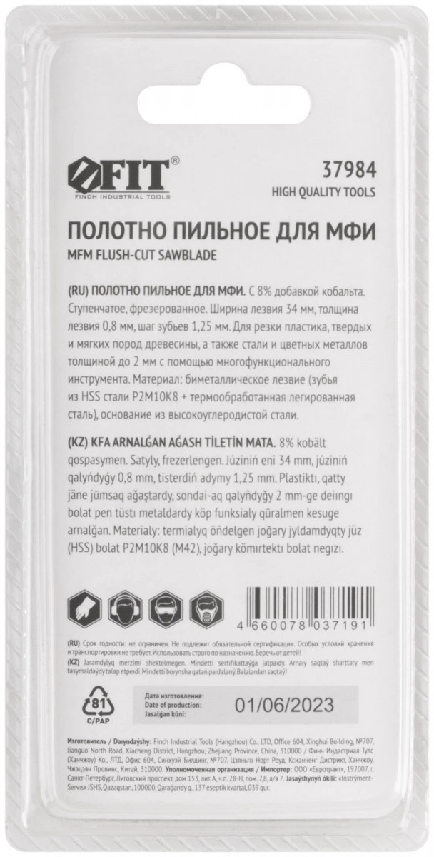 С 8% добавкой кобальта. Ступенчатое. Фрезерованное. Ширина лезвия 34 мм. Шаг зубьев 1,25 мм. Универсальное быстросъемное крепление. Для резки стали, цветных металлов, твердых и мягких пород древесины, пластика. Материал: биметаллическое лезвие, основа из высокоуглеродистой стали. Упаковка: блистер.