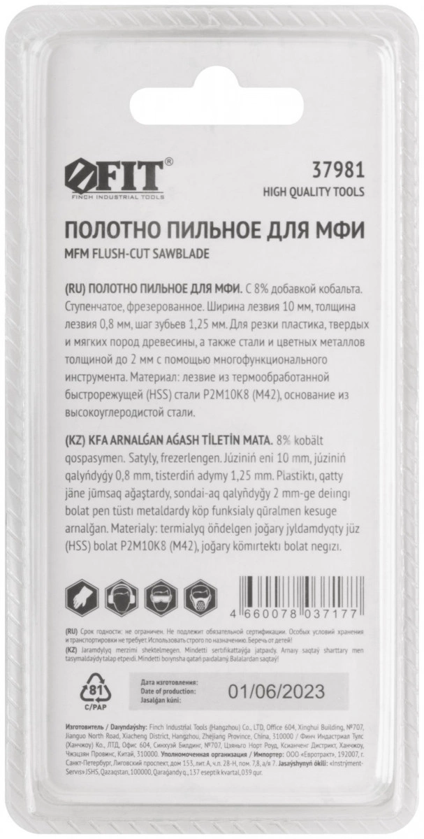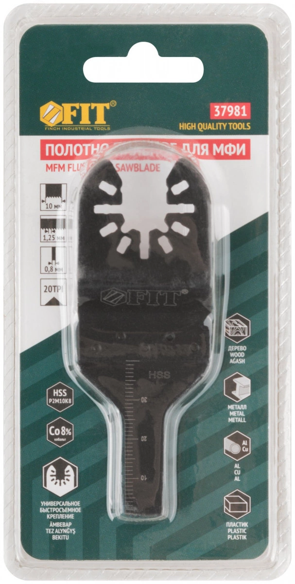 С 8% добавкой кобальта. Ступенчатое. Фрезерованное. Ширина лезвия 10 мм. Шаг зубьев 1,25 мм. Универсальное быстросъемное крепление. Для резки стали, цветных металлов, твердых и мягких пород древесины, пластика. Материал: лезвие из быстрорежущей (HSS) стали Р2М10К8 (M42), основание из высокоуглеродистой стали. Упаковка: блистер.