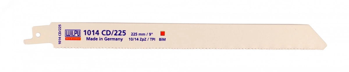 Полотно 1014 CD/225 Bi-metall WILPU 1356500005 является сменным элементом для сабельной ножовки. Применяется для резки металла толщиной от 2.5 мм и древесины с остатками металла. Изготовлено из биметалла. Заточка зубьев гарантирует лёгкий и комфортный рез без грубых трещин и сколов. Шаг 10/14 TPI.Обозначение - 1014 CD/225.Материал - Биметалл.Шаг зубьев, мм - 2,5/1,8.Длина реза, мм - 205.Размеры, мм - 225х19х1,27.Количество – 5 шт.