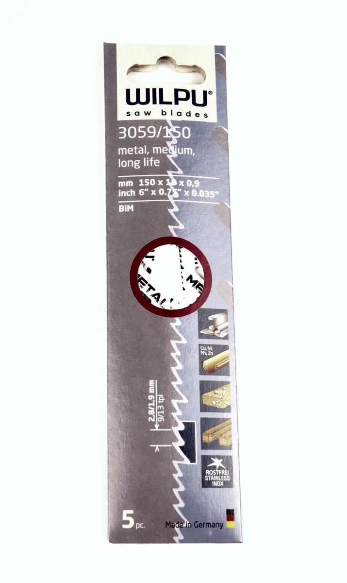 Полотно 3059/150 Bi-metall WILPU 1496000005 является сменным элементом для сабельной ножовки. Применяется для прямого реза по стали и древесине с остатками металла. Изготовлено из биметалла. Заточка зубьев гарантирует лёгкий и комфортный рез без грубых трещин и сколов. Материал - Биметалл.Шаг зубьев, мм - 2,8/1,9.Длина реза, мм - 130.Размеры, мм - 4 x 50 x 200.Количество – 5 шт.