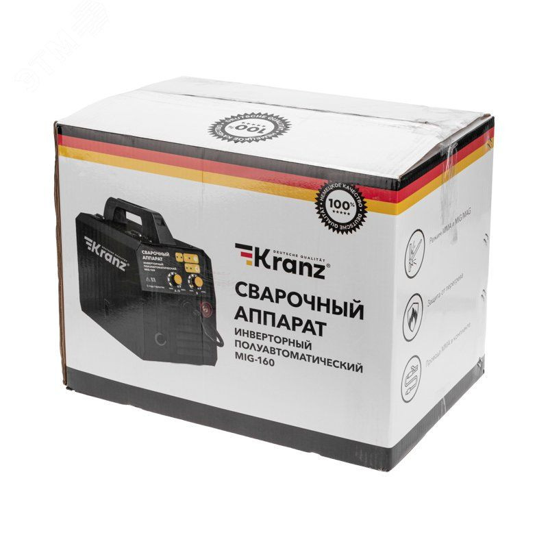 Сварочный аппарат инверторный полуавтоматический MIG-160 KRANZ представляет собой компактный, надежный и удобный прибор для сварки MIG/MAG/MMA. Подходит для бытового и полупрофессионального применения - выполнения работ на строительных объектах, в гараже, в мастерской, на даче и в загородном доме. Аппарат работает от сети 220 В. Данная модель имеет компактный корпус полный комплект для производства сварочных работ. Аппарат поддерживает обратную и прямую полярность при сварке и работает с электродами 2-4 мм. Обладает такими преимуществами как плавная регулировка сварочного тока, легкий старт (поджиг дуги) и отсутствие брызг при сварке. Предусмотрены такие функции, как поджиг повышенным током (антиприлипание), форсаж дуги в режиме ММА, HotStart в режиме ММА, дожигание сварочной проволоки, защита от перепадов напряжения, возможность работы с порошковой проволокой.