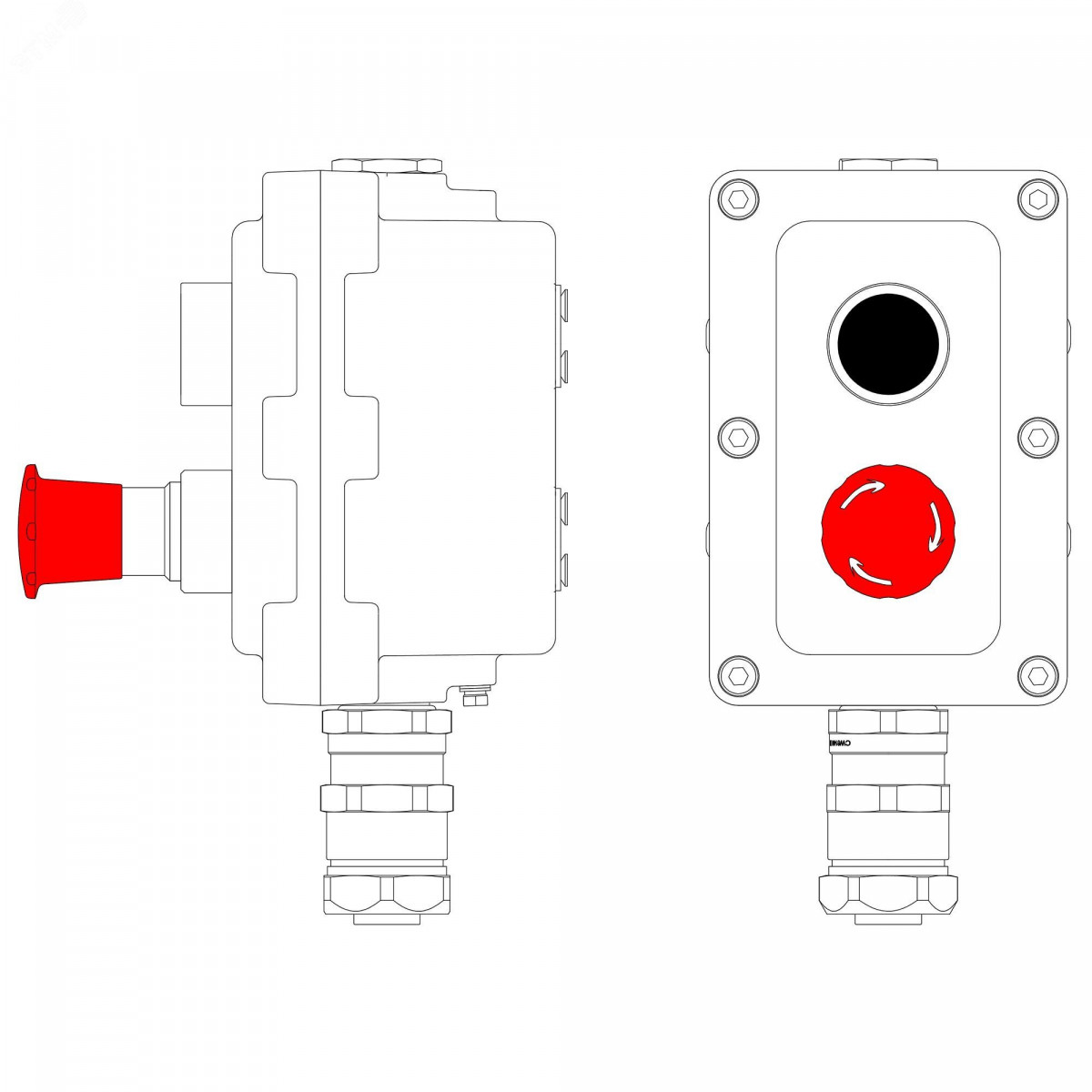 Пост управления взрывонепроницаемый из алюминия LCSD-02-B-MB-P1B(11)x1-P6E(11)x1-PBMB-KAEPM2MHK-20