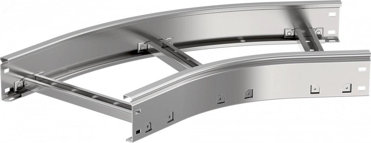 Применяется для организации поворота кабельной трассы на 45 градусов в горизонтальной плоскости с радиусом поворота 300 мм.Изготавливается из рулонной холоднокатанной стали предварительно оцинкованной по методу Сендзимира (ГОСТ 14918-2020).