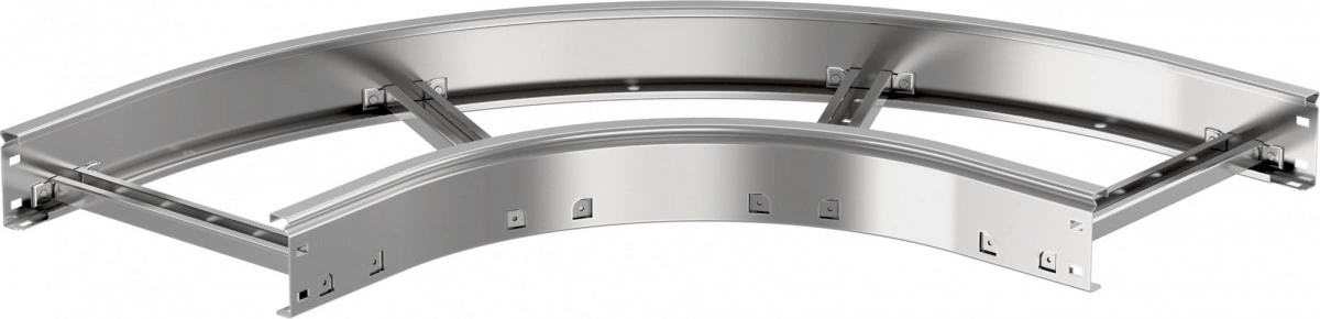 Применяется для организации поворота кабельной трассы на 90 градусов в горизонтальной плоскости с радиусом поворота 300 мм.Изготавливается из рулонной холоднокатанной стали предварительно оцинкованной по методу Сендзимира (ГОСТ 14918-2020).