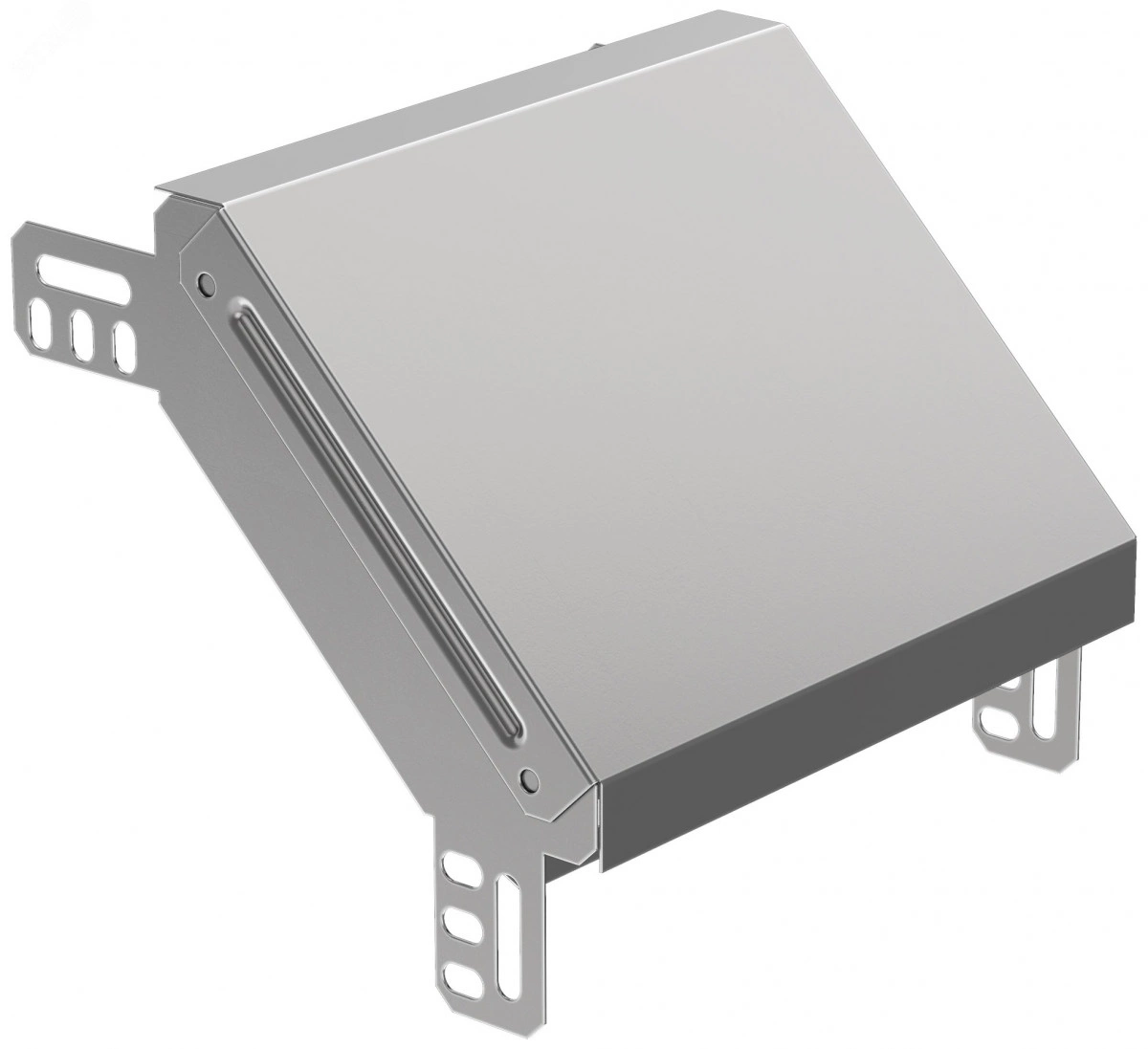 Поворот на 90° вертикальный внешний служит для организации вертикального поворота кабельной трассы на 90°. Данный аксессуар поставляется в комплекте с крышкой. Все аксессуары для металлических лотков изготовлены из стали горячего цинкования методом Сендзимира (защитный слой цинка 10-20 мкм).