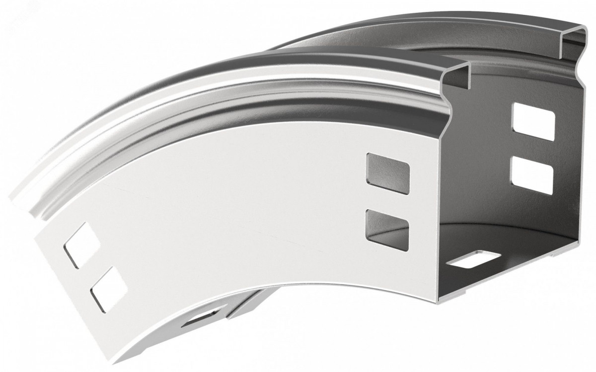 Поворот на 45 градусов вертикальный внешний плавный предназначен для организации вертикального внешнего поворота кабельной трассы на 45 градусов. Крышка аксессуара в комплект не входит.Аксессуар изготовлен из стали горячего цинкования методом Сендзимира (защитный слой цинка не менее 10 мкм).