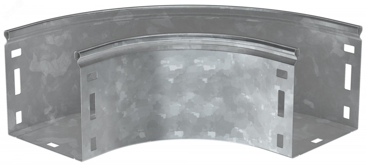 Поворот на 90 градусов плавный предназначен для организации горизонтального поворота кабельной трассы на 90 градусов. Крышка аксессуара в комплект не входит.Аксессуар изготовлен из стали с цинковым покрытием, нанесенным погружением изделий в расплав цинка (защитный слой цинка не менее 55 мкм).